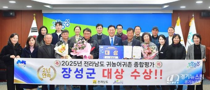 [경기뉴스원/경기뉴스1] | 장성군이 전라남도 귀농어귀촌 종합평가에서 2년 연속 1위를 기록하며 ‘대상’을 수상했다.