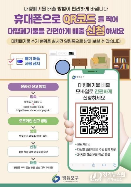 [경기뉴스원/경기뉴스1] | 영등포구가 대형폐기물 수거 과정에서 발생하던 처리 지연, 환불 등 구민 불편을 해소하기 위해 ‘대형폐기물 실시간 수거관리 시스템’을 도입하고 내년 1월부터 시행한다고 밝혔다.