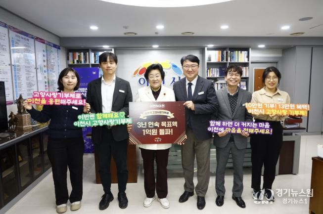 [경기뉴스원/경기뉴스1] | 이천시는 고향사랑기부제 시행 이후 3년 연속 누적 기부금 1억 원을 돌파하며 제도의 안정적인 정착과 지속적인 성과를 이어가고 있다고 밝혔다.