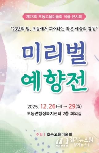 [경기뉴스원/경기뉴스1] | 밀양시 초동고을미술회는 26일부터 29일까지 초동면 행정복지센터 2층 회의실에서 제23회 ‘미리벌 예향(藝鄕)전’을 개최한다.