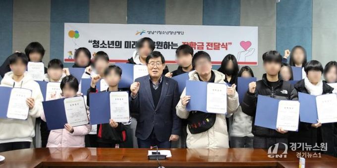 [경기뉴스원/경기뉴스1] | 성남시청소년청년재단은 2월 9일, 성남시 취약계층 및 위기 청소년 18명에게 총 1,800만 원 규모의 장학금을 전달했다고 밝혔다.