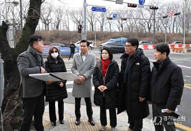[경기뉴스원/경기뉴스1] | 서울특별시의회 시민권익위원회 위원으로 활동하고 있는 박춘선 의원(강동3, 국민의힘)이 2월 10일 교통정체로 시민 불편이 지속되고 있는 가산한내보도육교 앞 교차로를 직접 찾아 현장 점검을 실시했다. 현장에는 서울특별시의회 현장민원과와 서부간선도로 주관 부서인 서울시 도로계획과, 도시기반시설본부 관계자가 함께 했다.