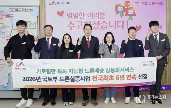 [경기뉴스원/경기뉴스1] | 충남 서산시는 국토교통부와 항공안전기술원이 주관하는 2026년 드론 실증도시 구축사업 공모에 전국 최초로 6년 연속 선정됐다고 밝혔다.