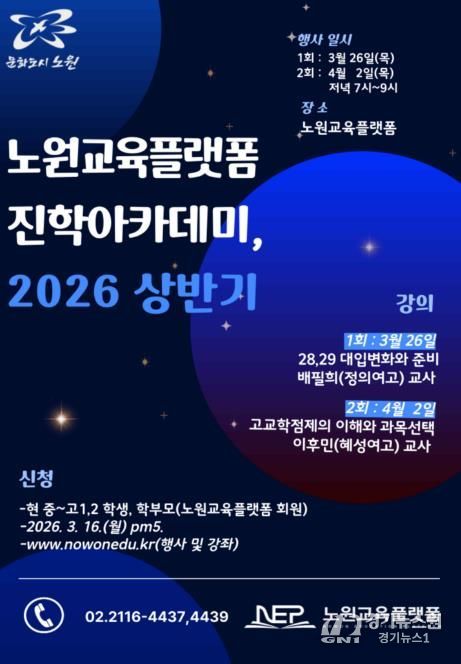[경기뉴스원/경기뉴스1] | 서울 노원구는 공신력 있는 교육 정보 제공을 위해 ‘2026년 상반기 노원교육플랫폼 진학아카데미’를 운영한다고 밝혔다.