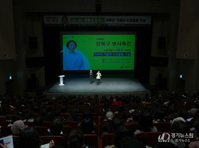 [경기뉴스원/경기뉴스1] | 서울 강북구는 지난 3월 27일 오후 7시 강북문화예술회관 강북소나무홀에서 ‘가족의 기쁨과 상호돌봄 기술’을 주제로 '제9회 강북구 명사특강'을 개최했다고 밝혔다.