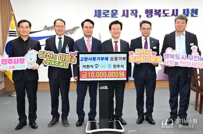 [경기뉴스원/경기뉴스1] | 진주시와 사천시는 1일 사천시청 시장실에서 고향사랑기부제 상호 기부 전달식을 갖고, 지역 간의 상생 협력을 다짐했다고 밝혔다.
