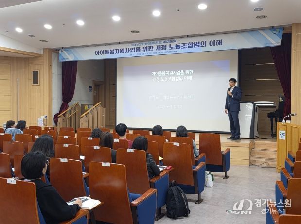 [경기뉴스원/경기뉴스1] | 경기도아이돌봄광역지원센터는 20일 경기도인재개발원 다산홀에서 도내 31개 시군 아이돌봄서비스 제공기관 종사자와 관련 공무원을 대상으로 ‘2026년 노동조합법 이해 교육’을 개최했다.