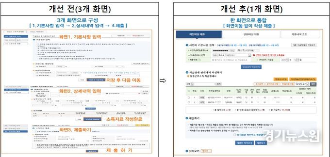 2) 여러 종류의 소득자료를 제출할 경우, 화면이동 없이 하나의 화면에서 제출하도록 통합