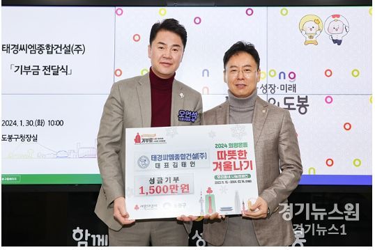 경기뉴스원(경기뉴스1) | 도봉구 지난 1월 30일 태경씨엠종합건설(주) 김태언 대표로부터 지역 내 어려운 이웃을 위한 성금 1천 5백만 원을 기부받았다고 밝혔다.