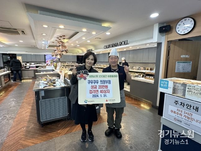 경기뉴스원(경기뉴스1) | 의정부시 의정부1동주민센터(동장 김영리)는 1월 31일 쿠우쿠우 의정부점(대표 신대식)이 ‘100일간 사랑릴레이 배턴 잇기’ 창구에 성금 20만 원과 컵라면 40상자를 기부했다고 밝혔다.