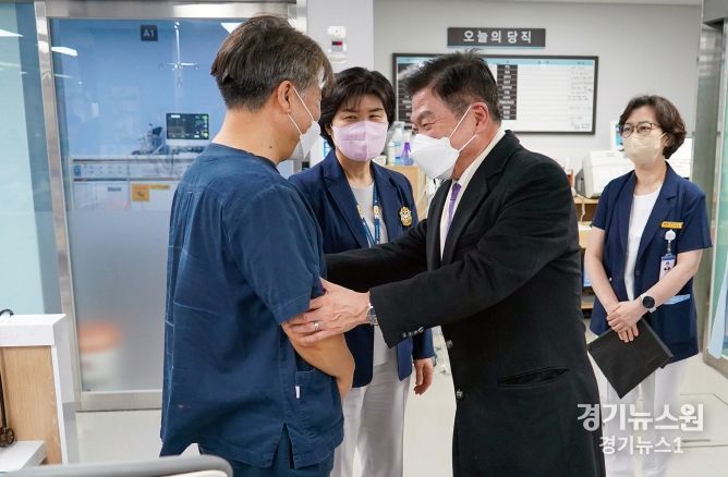 경기뉴스원(경기뉴스1) | 이필형 동대문구청장은 23일 전공의 파업 등 의사 집단행동에 대한 보건의료재난 위기경보가 ‘경계’에서 ‘심각’ 단계로 격상함에 따라, 관내 경희대학교병원 및 삼육서울병원을 방문하여 진료상황 및 응급의료체계를 직접 점검하고 의료공백 상황에서 어려움을 겪고 있는 현장 의료진을 격려했다.