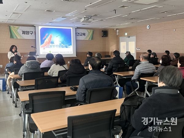 경기뉴스원(경기뉴스1) | 인천광역시 계양구는 지난 4일 구청 신비홀에서 공공근로사업 및 지역공동체일자리사업 참여자 32명을 대상으로 안전보건교육을 실시했다.