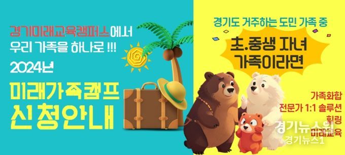 조태훈 경기도 평생교육과장은 “이번 가족캠프를 통해 우리 아이에게 맞는 미래 역량 강화와 진로 설계를 하며 가족 소통과 화합의 시간이 되기를 기대한다”고 말했다.
