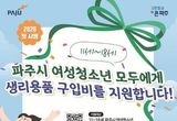 모든 파주시 11~18세 여성청소년 여러분, 생리용품 지원 신청하세요