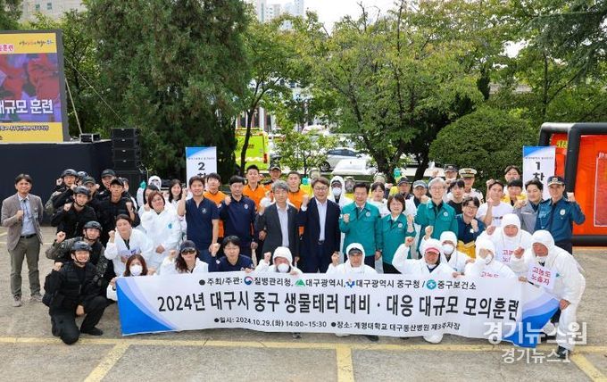 경기뉴스원(경기뉴스1) | 대구 중구보건소는 29일 오후 2시 계명대학교 대구동산병원 제3주차장에서 ‘2024년 생물테러 대비·대응 대규모 모의훈련’을 실시했다.