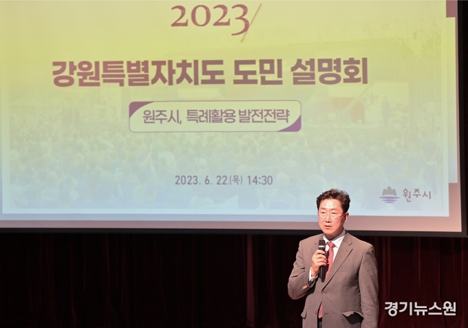 원강수 원주시장은 “강원특별법의 내용과 반영된 특례를 설명하기 위해 마련된 자리인 만큼, 시민 여러분의 관심과 참여를 부탁드린다”라며, “앞으로도 원주에 필요한 특례를 계속 발굴하여 경제 제일도시 원주를 만들기 위해 최선을 다하겠다.”라고 밝혔다.