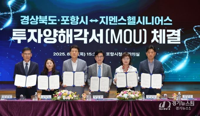 [경기뉴스원/경기뉴스1] | 포항시와 경상북도는 21일 시청 대회의실에서 지멘스헬시니어스㈜와 210억 원 규모의 투자양해각서를 체결했다.