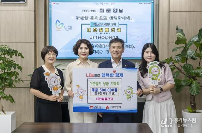 [경기뉴스원/경기뉴스1] | 김제시는 대한철물건재가 지난 2일 관내 취약계층을 위해, 매월 50만 원씩 정기적으로 기부하는 기탁식을 진행했다고 밝혔다.