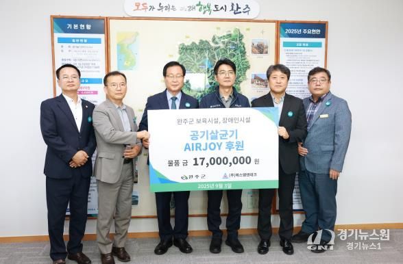 [경기뉴스원/경기뉴스1] | ㈜에스엠엔테크가 완주군 내 사회복지시설을 위해 1,700만 원 상당의 공기정화살균기 20대를 기탁하며 따뜻한 나눔을 실천했다.