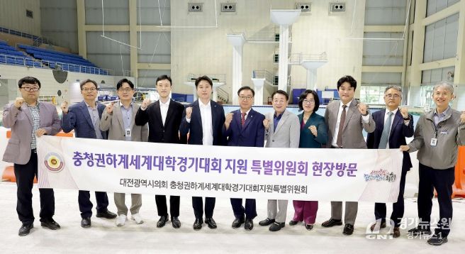 [경기뉴스원/경기뉴스1] | 대전시의회 충청권 하계세계대학경기대회 지원 특별위원회(위원장 김진오)는 8일 2027 충청권 하계세계대학경기대회의 경영·다이빙 경기장으로 활용될 용운국제수영장을 방문해 시설 현황을 점검했다.