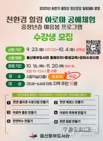 울산동구정신건강복지센터가 주관하는 이번 강좌는 중장년층의 정서적 안정감을 돕고자 마련됐다.