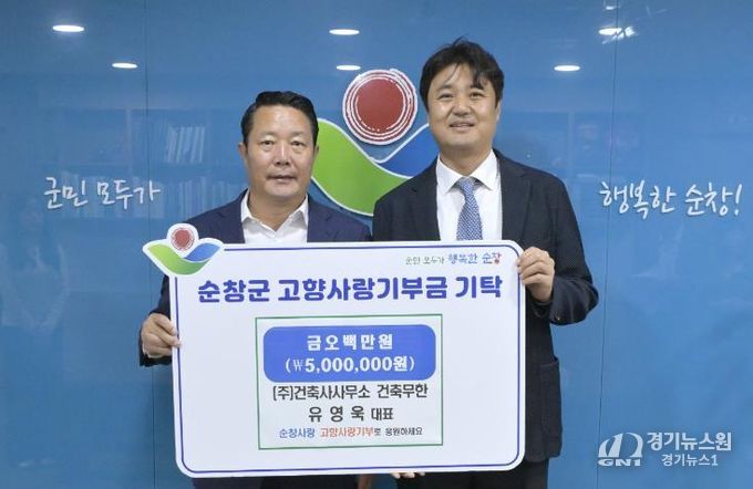 [경기뉴스원/경기뉴스1] | (주)건축사사무소 건축무한 유영욱 대표가 지난해에 이어 올해도 순창군에 고향사랑기부금 500만원을 기탁하며 순창군을 응원하는 마음을 전했다.