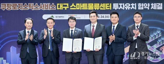 [경기뉴스원/경기뉴스1] | 대구광역시는 9월 24일 오후 4시 30분, 시청 동인청사 2층 상황실에서 국내 택배부문 1위 기업인 ‘쿠팡로지스틱스서비스(유)’(대표 홍용준, 이하 ‘쿠팡로지스틱스서비스’)와 수성알파시티 내 첨단 스마트물류센터 구축을 위한 투자유치 협약을 체결했다.