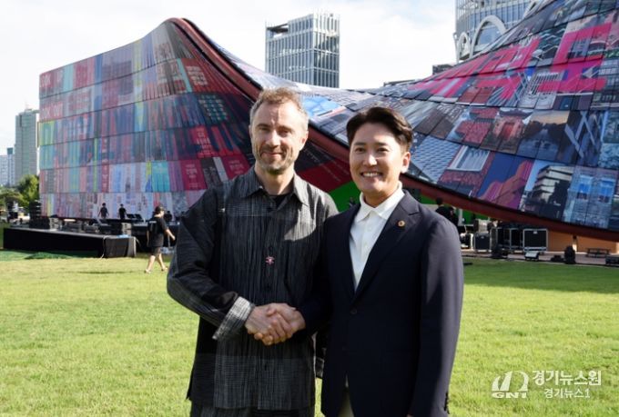 [경기뉴스원/경기뉴스1] | 서울특별시의회 주택공간위원회 이민석 부위원장(국민의힘, 마포1)은 25일 개막을 하루 앞둔 '제5회 서울도시건축비엔날레' 현장을 찾아 최종 준비 상황을 점검했다. 이날 점검에는 이번 비엔날레의 총감독을 맡은 토마스 헤더윅(Thomas Heatherwick)이 함께했다.