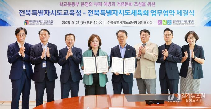 [경기뉴스원/경기뉴스1] | 전북특별자치도교육청과 전북특별자치도체육회가 공정하고 투명한 학교 운동부 환경 조성을 위해 손을 맞잡았다.