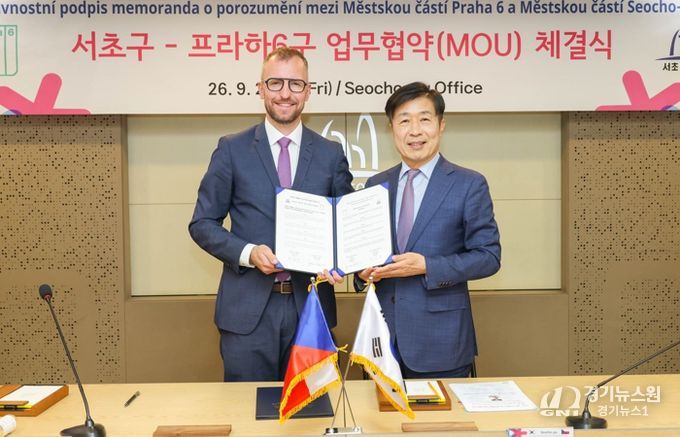 [경기뉴스원/경기뉴스1] | 서울 서초구는 지난 26일 구청 5층 대회의실에서 체코 프라하 6구와 문화, 예술, 교육 분야 등 상호 교류 우호증진을 위한 우호도시협정 양해각서(MOU)를 체결했다고 밝혔다.