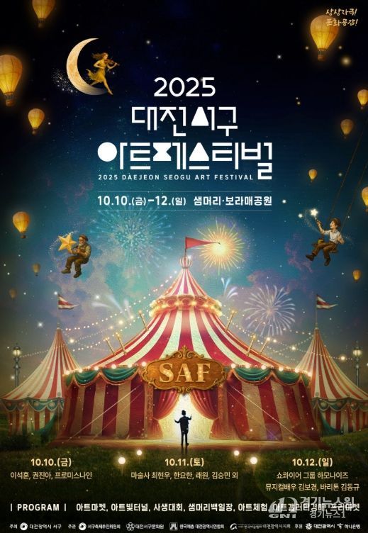 [경기뉴스원/경기뉴스1] | 대전 서구는 10월 10일부터 12일까지 3일간 서구청 앞 샘머리공원과 보라매공원 일원에서 ‘2025 대전 서구 아트페스티벌’을 개최한다.