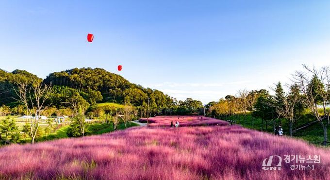 [경기뉴스원/경기뉴스1] | 깊어가는 가을, 경남 함안의 악양생태공원이 분홍빛 설렘과 가을 정취로 물들고 있다.