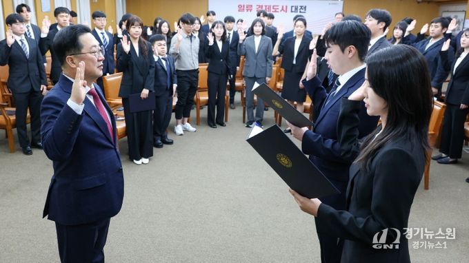 [경기뉴스원/경기뉴스1] | 이장우 대전시장은 30일 시청 대회의실에서 2025년도 대전시 새내기 공직자 44명에게 임용장을 수여했다.