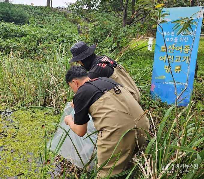 [경기뉴스원/경기뉴스1] | 경기도해양수산자원연구소가 토종 민물고기 종 보존과 하천 생태계 복원을 위해 경기도 보호 어종인 버들붕어 치어 1천 마리를 9월 30일 광주시 경안천습지생태공원에 방류했다.