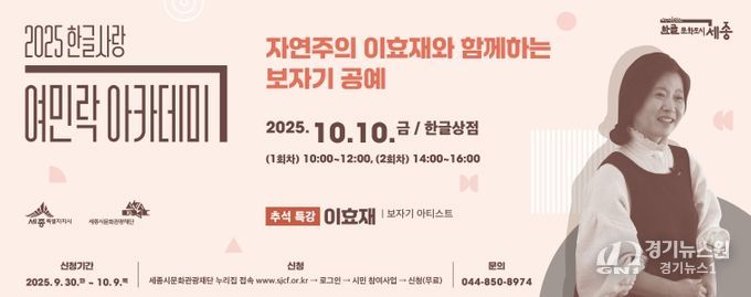 [경기뉴스원/경기뉴스1] | 세종시문화관광재단(대표이사 박영국)은 ‘2025 한글사랑 여민락 아카데미 추석 특별강좌’를 오는 10월 10일 진행한다.