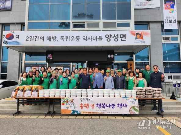 [경기뉴스원/경기뉴스1] | 양성면새마을지도자․부녀회는 9월 30일 양성면 행정복지센터 앞 주차장에서 “추석맞이 송편 행복 나눔” 행사를 진행했다. 이번 행사는 민족 최대 명절인 추석을 맞아 지역 내 취약계층에게 따뜻한 정을 나누고, 모두가 풍성한 한가위를 보낼 수 있도록 돕기 위해 마련됐다.