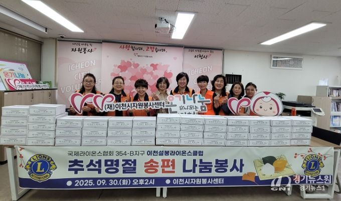 [경기뉴스원/경기뉴스1] | 이천시 자원봉사센터는 지난 9월 30일 이천설봉라이온스클럽과 함께 사랑의 송편 나눔 행사를 개최하며 ‘2025년 추석맞이 집중 자원봉사 주간’에 동참했다.