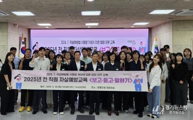 [경기뉴스원/경기뉴스1] | 양평군은 지난 9월 30일 양평군청 대회의실에서 공공기관 종사자 약 100명을 대상으로 ‘자살 예방 생명지킴이 교육’을 실시했다.