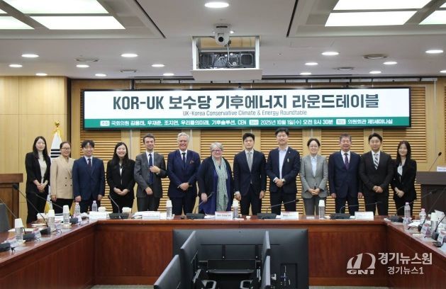 [경기뉴스원/경기뉴스1] | 국민의힘 김용태 국회의원(경기 포천·가평, 국회 기후특위 위원)은 1일 국회의원회관에서 열린 'KOR-UK 보수당 기후에너지 라운드테이블'에서 “지속가능한 녹색경제를 위해 보수정당 간 국제협력이 필요하다”며 ‘글로벌 녹색성장 보수정당 협의체(가칭)’ 설립을 공식 제안했다