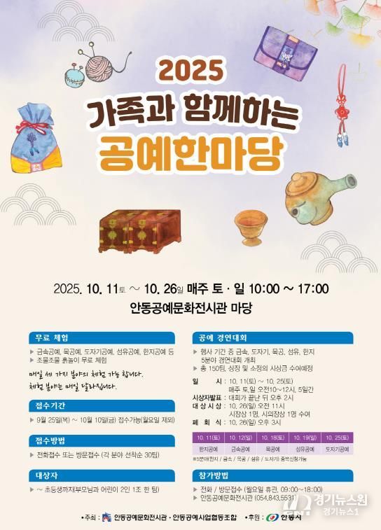 [경기뉴스원/경기뉴스1] | 안동공예문화전시관(안동공예사업협동조합)이 주최하고 안동시가 후원하는 ‘2025 공예한마당’ 행사준비가 한창이다.