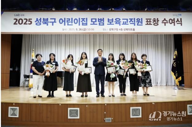 [경기뉴스원/경기뉴스1] | 서울 성북구가 지난 26일 관내 어린이집에서 장기간 근무하며 보육서비스 향상과 우수 보육프로그램 개발, 보육환경 개선에 기여한 모범 보육교직원에게 표창을 수여했다. 올해 수상자는 원장, 보육교사, 조리사 등 총 77명으로, 각자의 자리에서 아이들의 안전과 건강, 교육의 질 향상에 힘써온 공로를 인정받았다.