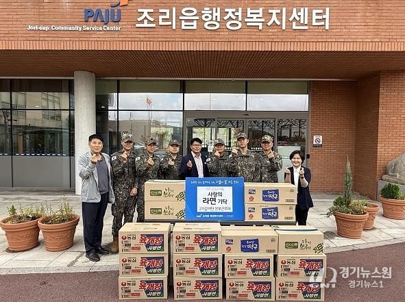 [경기뉴스원/경기뉴스1] | 파주시 조리읍은 지난 29일, 제2기갑여단 본부근무대가 추석을 맞아 지역 내 어려운 이웃을 돕기 위해 컵라면 등 즉석식품 16상자를 기탁했다고 밝혔다.
