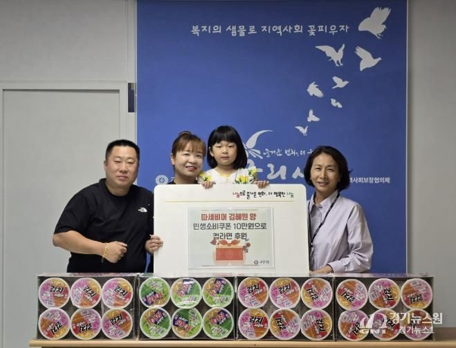 [경기뉴스원/경기뉴스1] | 구리시 교문1동 행정복지센터는 지난 10월 1일, 관내 식당 따세비어의 딸 김혜원(5세) 양이 민생 소비 쿠폰 10만 원으로 마련한 컵라면 17박스를 어려운 취약계층에 전달하기 위해 기탁했다고 밝혔다.