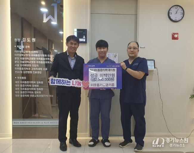 [경기뉴스원/경기뉴스1] | 양주시 양주2동이 지난 1일 관내 원마취통증의학과의원에서 추석을 맞이하여 이웃돕기 성금 200만 원을 양주2동에 기탁했다고 밝혔다.