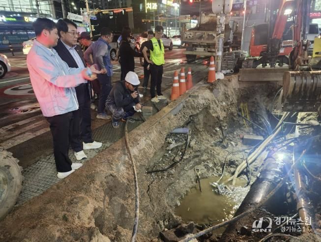 [경기뉴스원/경기뉴스1] | 조성대 남양주시의회 의장이 지난 1일 저녁 평내동 일대 노후 상수도관 교체 현장을 방문해 단수로 인한 주민 불편이 최소화될 수 있도록 신속한 복구를 주문했다.