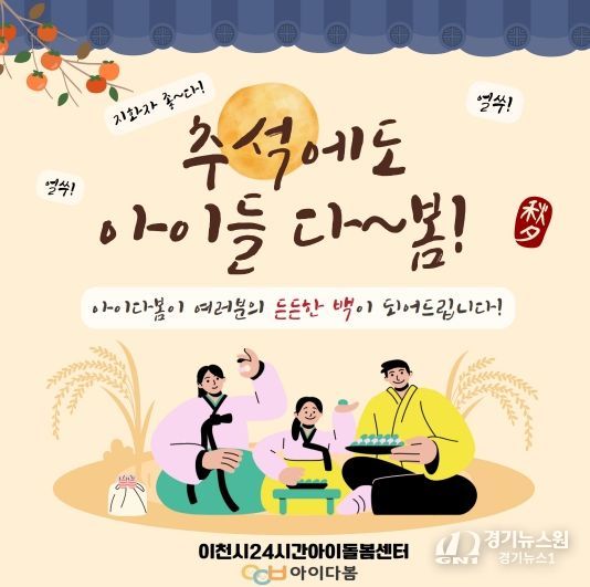 [경기뉴스원/경기뉴스1] | 이천시는 추석 연휴 기간에도 이천시 24시간 아이돌봄센터인 ‘아이다봄’을 365일 24시간 정상 운영해 연휴 중 발생할 수 있는 돌봄 공백을 최소화한다고 밝혔다.