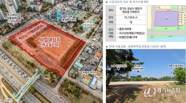 [경기뉴스원/경기뉴스1] | 성남시는 판교동 578번지 옛 차량등록사업소 부지의 개발 방향을 ‘기업 유치 및 복합문화체육시설 조성’으로 확정하고, 내년부터 사업을 본격 추진한다고 2일 밝혔다. 이는 16년간 방치된 부지를 지역 발전과 시민 편익 증진의 거점으로 탈바꿈시키려는 시의 강력한 의지가 반영된 결과다.