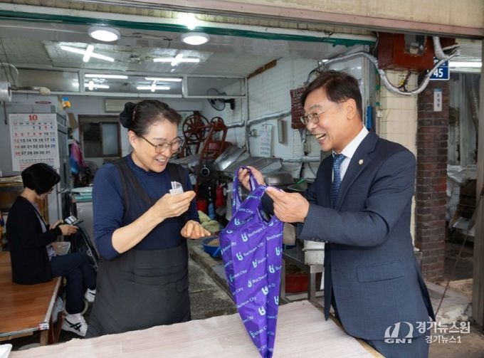 [경기뉴스원/경기뉴스1] | 김병전 부천시의회 의장은 2일 추석 명절을 앞두고 전통시장과 상점가를 방문해 소상공인을 격려했다.