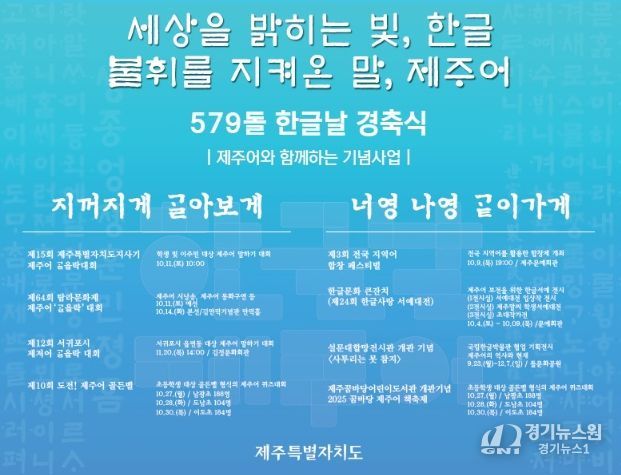 [경기뉴스원/경기뉴스1] | 제주특별자치도는 훈민정음 반포 579돌 한글날을 맞이해 오는 9일 오전 10시 제주문예회관에서 한글날 경축식을 개최한다.