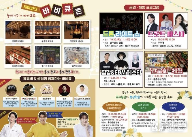 [경기뉴스원/경기뉴스1] | 홍성군은 오는 10월 30일부터 11월 2일까지 홍주읍성 일원에서 열리는 ‘2025 홍성글로벌바비큐페스티벌’을 중심으로 국화축제, 유기농 페스타, 평생학습 한마당, 상설시장 행사 등 다채로운 즐길거리를 함께 선보인다.
